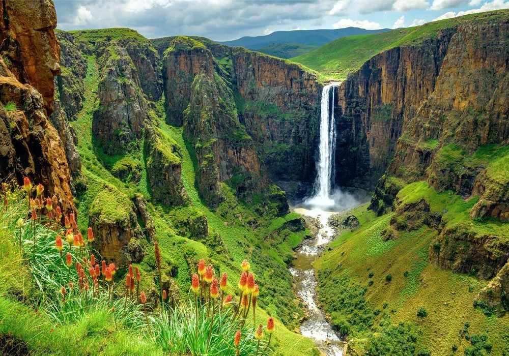 Maletsunyane Falls is one of the most famous natural attractions in Lesotho. The waterfall drops about 192 meters into a deep gorge, making it one of the highest single-drop waterfalls in Africa. The powerful waterfall creates mist that rises into the air, producing a breathtaking sight. The area around the falls is ideal for hiking, sightseeing, and photography, and it is also known for offering one of the world's highest commercial abseiling experiences.